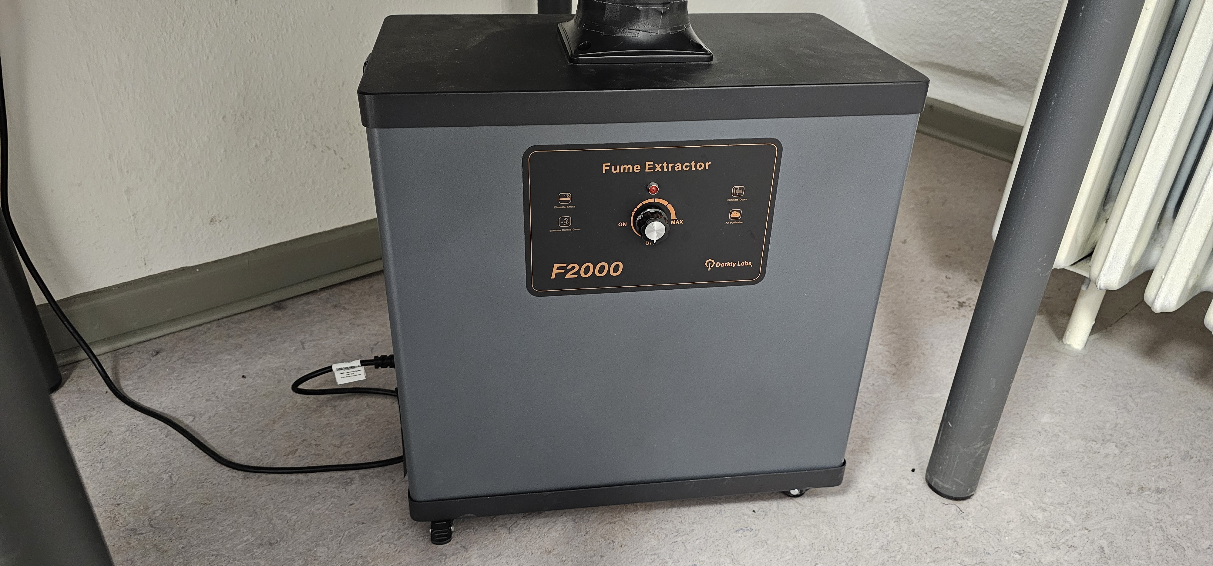- Schalten Sie nun manuell die Lüftung der Absauganlage per Drehregler ein und starten Sie den Schnitt-/ Gravurjob.